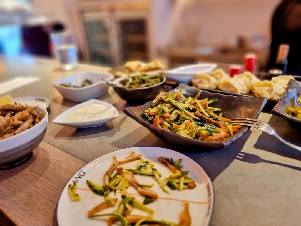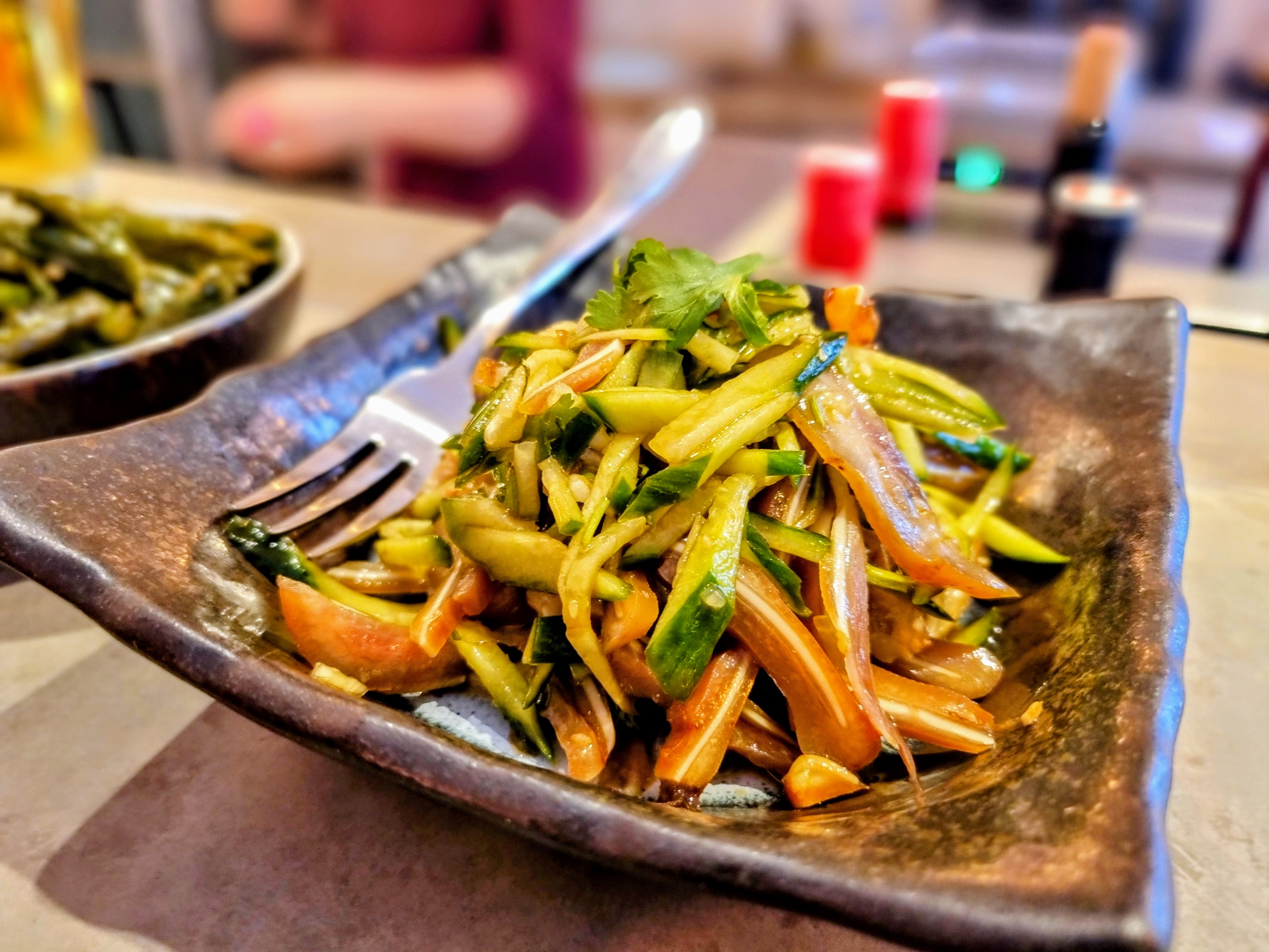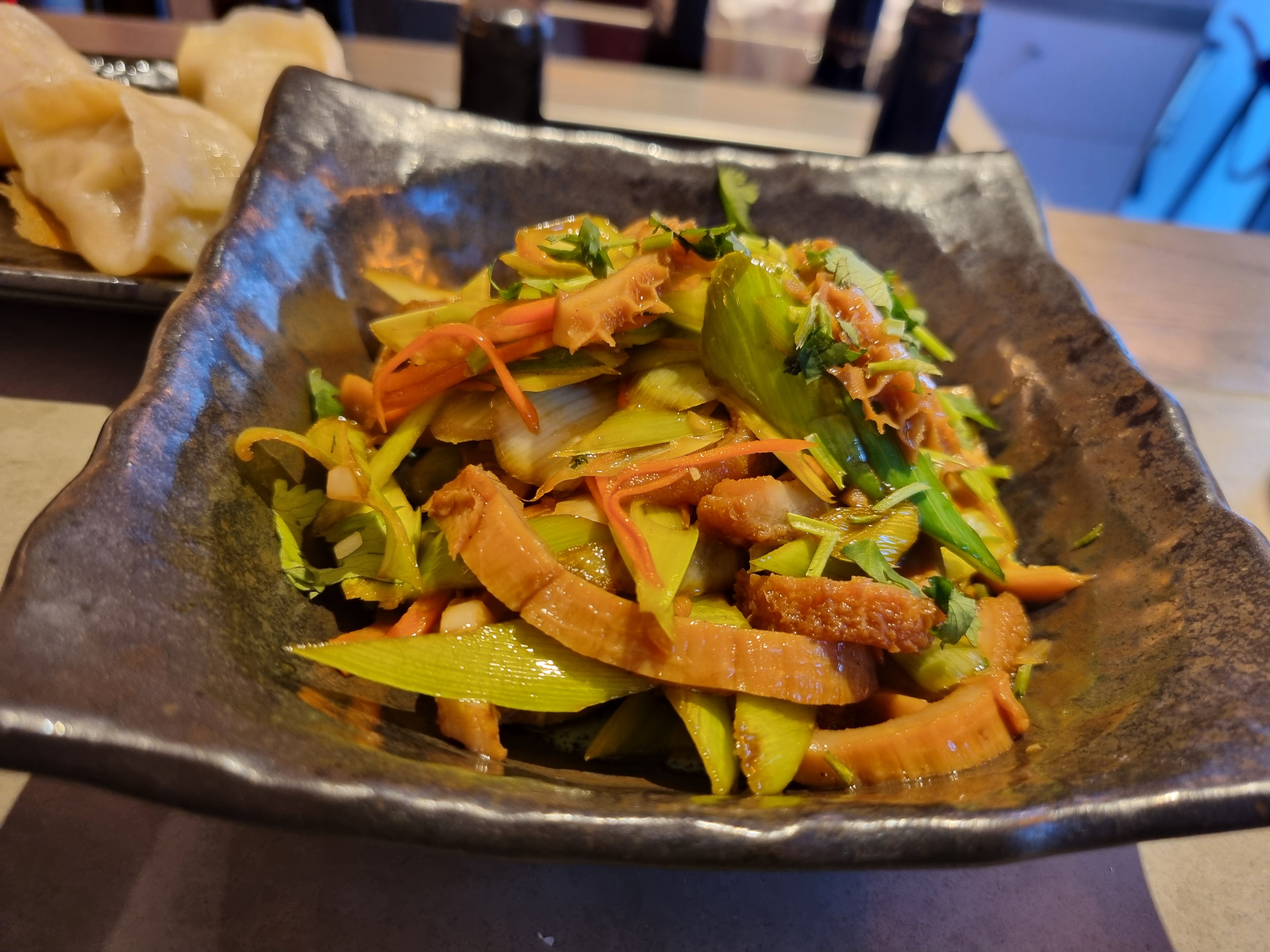 Der Mann mit dem zeitweiligen Rehkitzblick teilt mein Interesse an der asiatischen Küche, gepaart mit einem gewissen Hang zur kulinarischen Maßlosigkeit, was in einer chinesischen Tapasbar ein gewisses Eskalationspotential birgt. Wir nutzen also das Streetfood-Tapas-Konzept, um die Methode von Geschmacksvergleich und Konsistenzverflechtung anzuwenden. Als „Quellen“ lassen wir im – freilich sehr frischen – „Archiv“ der kleinen Küche Folgendes ausheben: