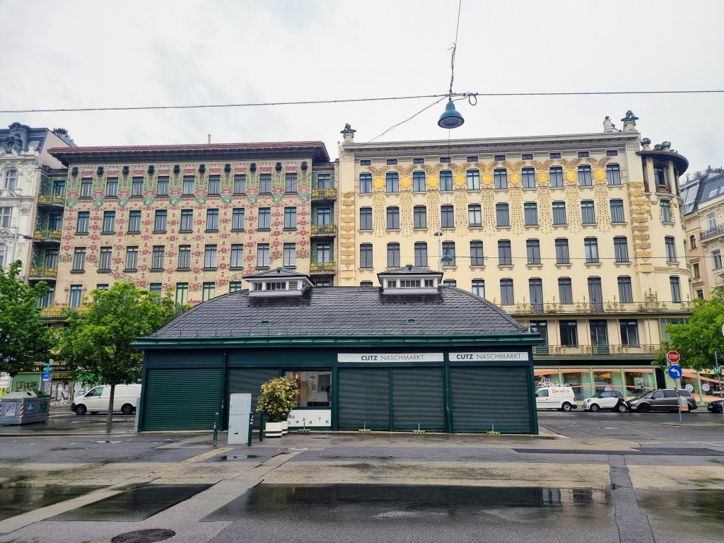 Darunter das Majolikahaus, 1898 errichtet, Majolikafliesen von Wienerberger auf der Fassade. Die sind nicht nur schön, sondern lassen sich auch leicht abwaschen.