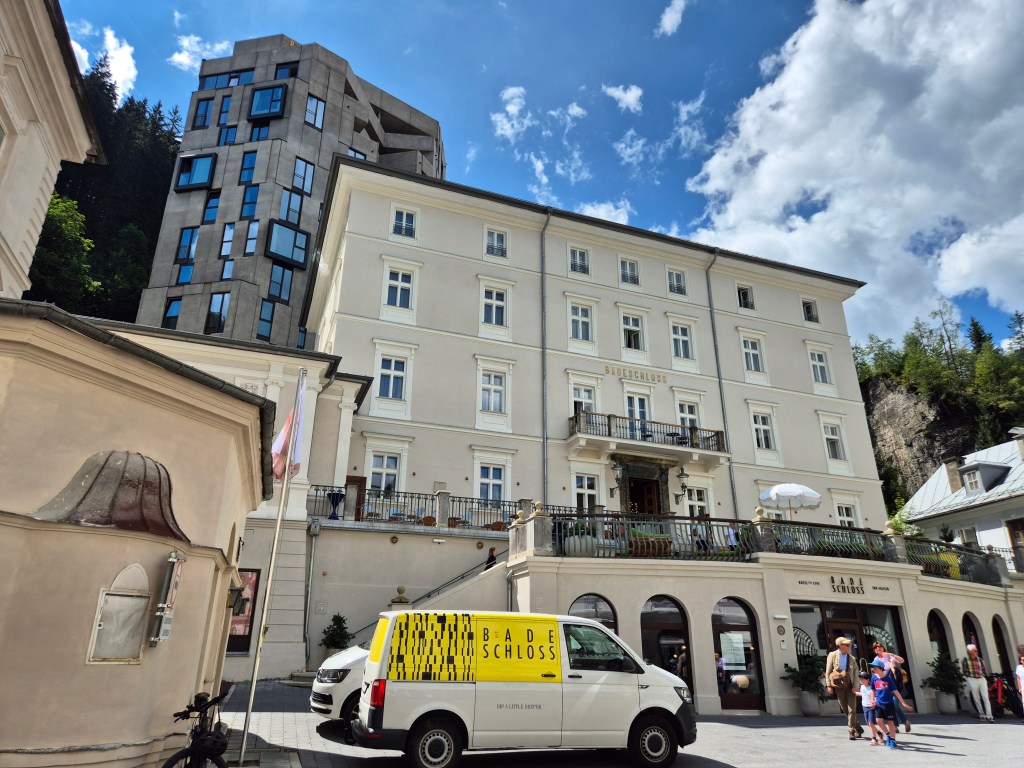 Wir parken ganz gerne in dem grauslichen Betonklotz, der zwar in der zweiten Reihe, aber deutlich sichtbar das historische Zentrum Bad Gasteins optisch mitdefiniert. Es ist halt praktisch, das Auto mitten im Ort abzustellen. So oft waren wir schon hier.